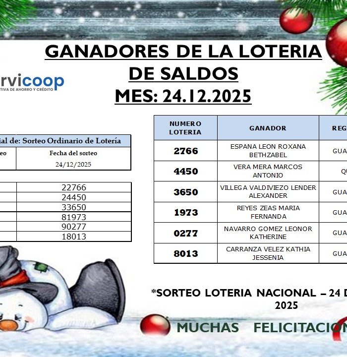 GANADORES DE LA LOTERIA DEL 24 DE DIC-25