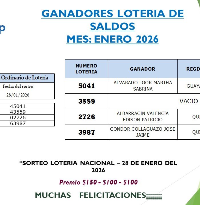 GANADORES DE LA LOTERIA DEL 31-ENERO-2026